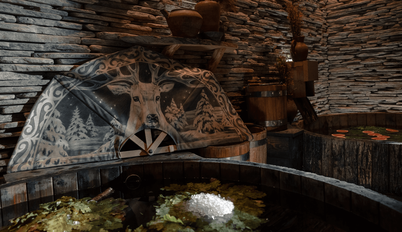 Guests are transported to the Altai plains, where warm, dry winds, heavy rains, and scorching sun prevail. This meditative immersion into the culture of Siberian nomads is possible through the sounds of folk instruments and the aroma of herbs.